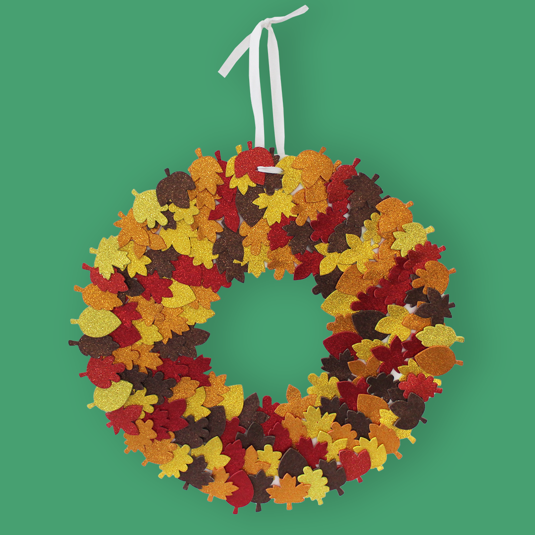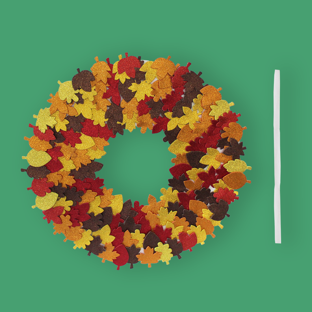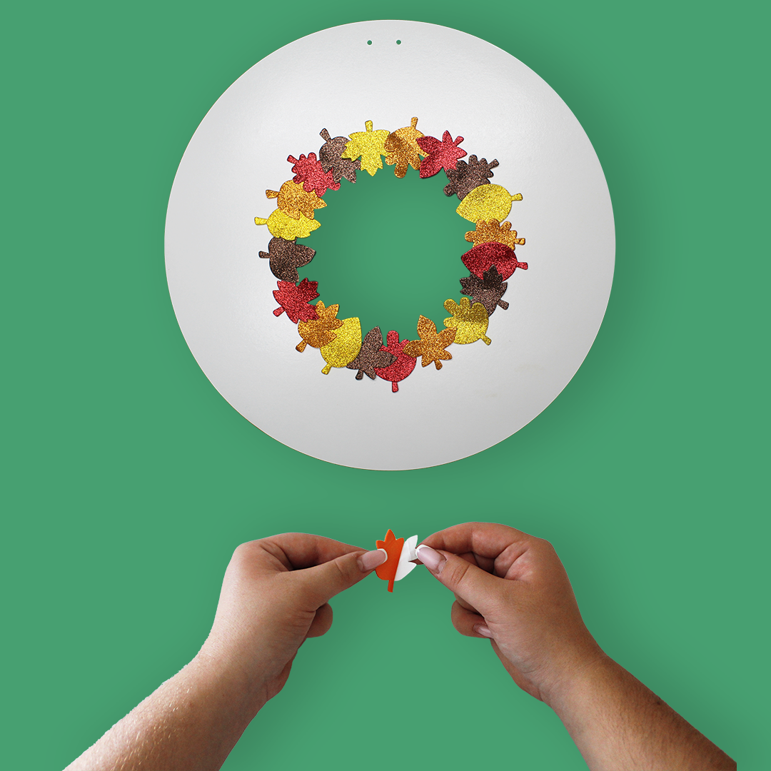 - Place ensuite au brillant avec mes gommettes en mousse AUTOMNE que je dispose sur toute la couronne.