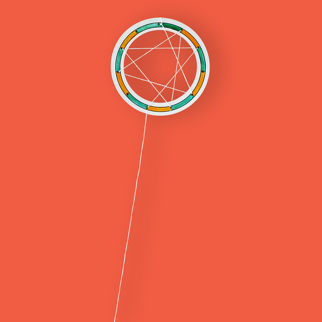- Je tisse mon attrape-rêve en nouant le premier fil comme base. Ensuite, je tisse les autres fils en spirale, formant des triangles en décalant à chaque tour.
