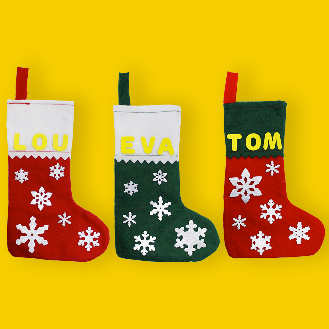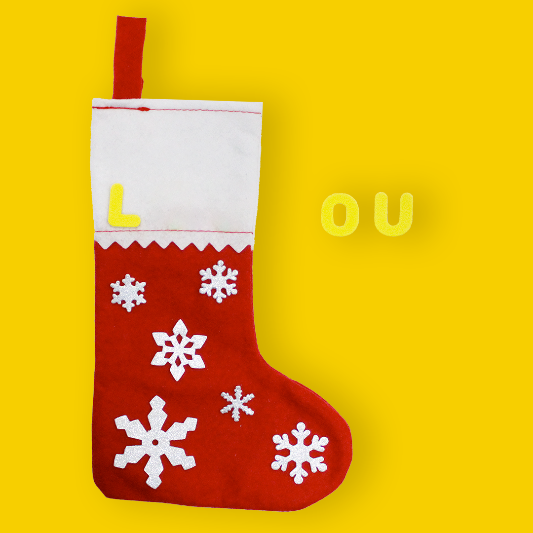 - Je personnalise ma chaussette en inscrivant mon prénom avec les gommettes en mousse LETTRES.