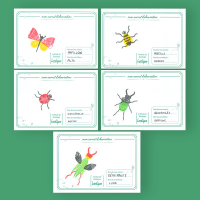 Un kit créatif INSECTES À CRÉER pour imaginer, composer et colorer une infinité d’insectes réels ou fantastiques !