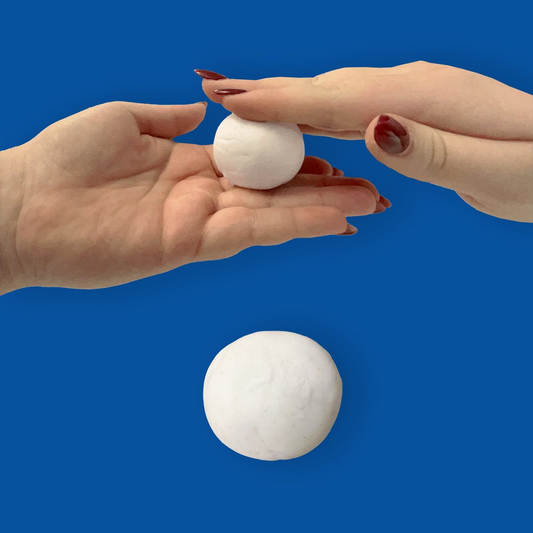 - Je commence par former 2 boules de tailles différentes pour créer la tête et le corps du bonhomme de neige avec ma PATAQUA blanche.