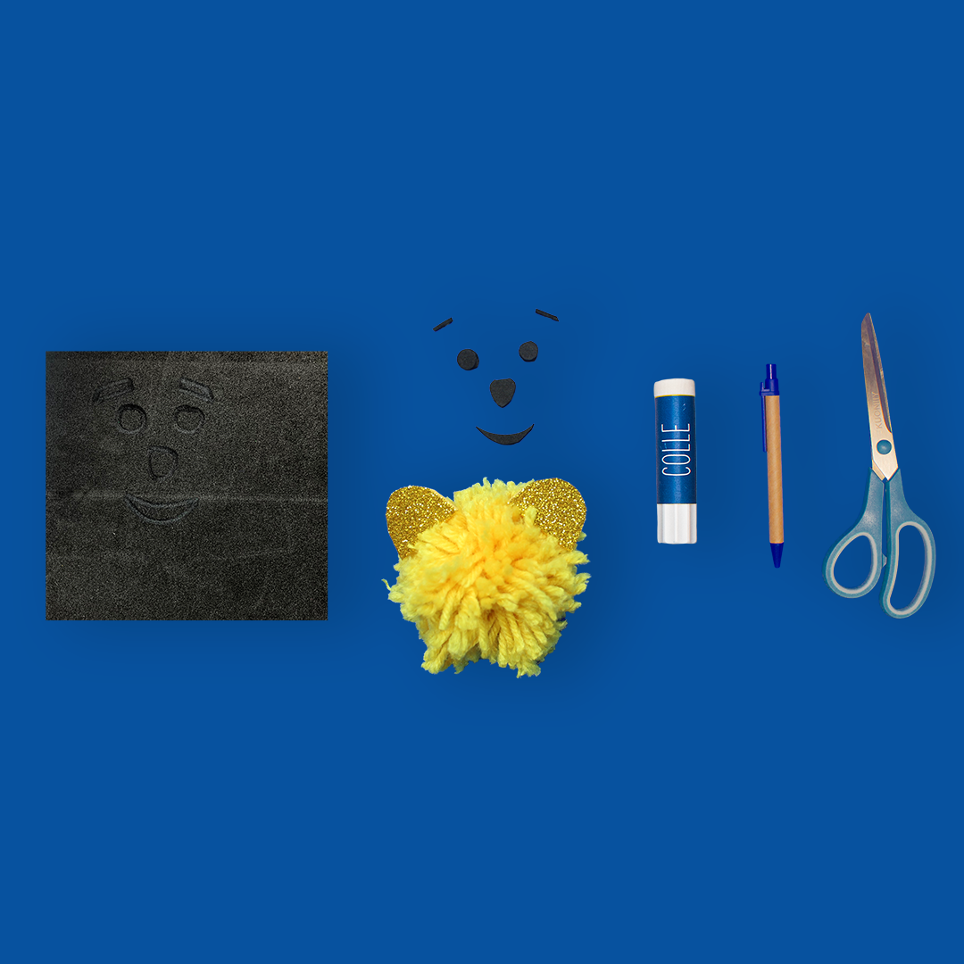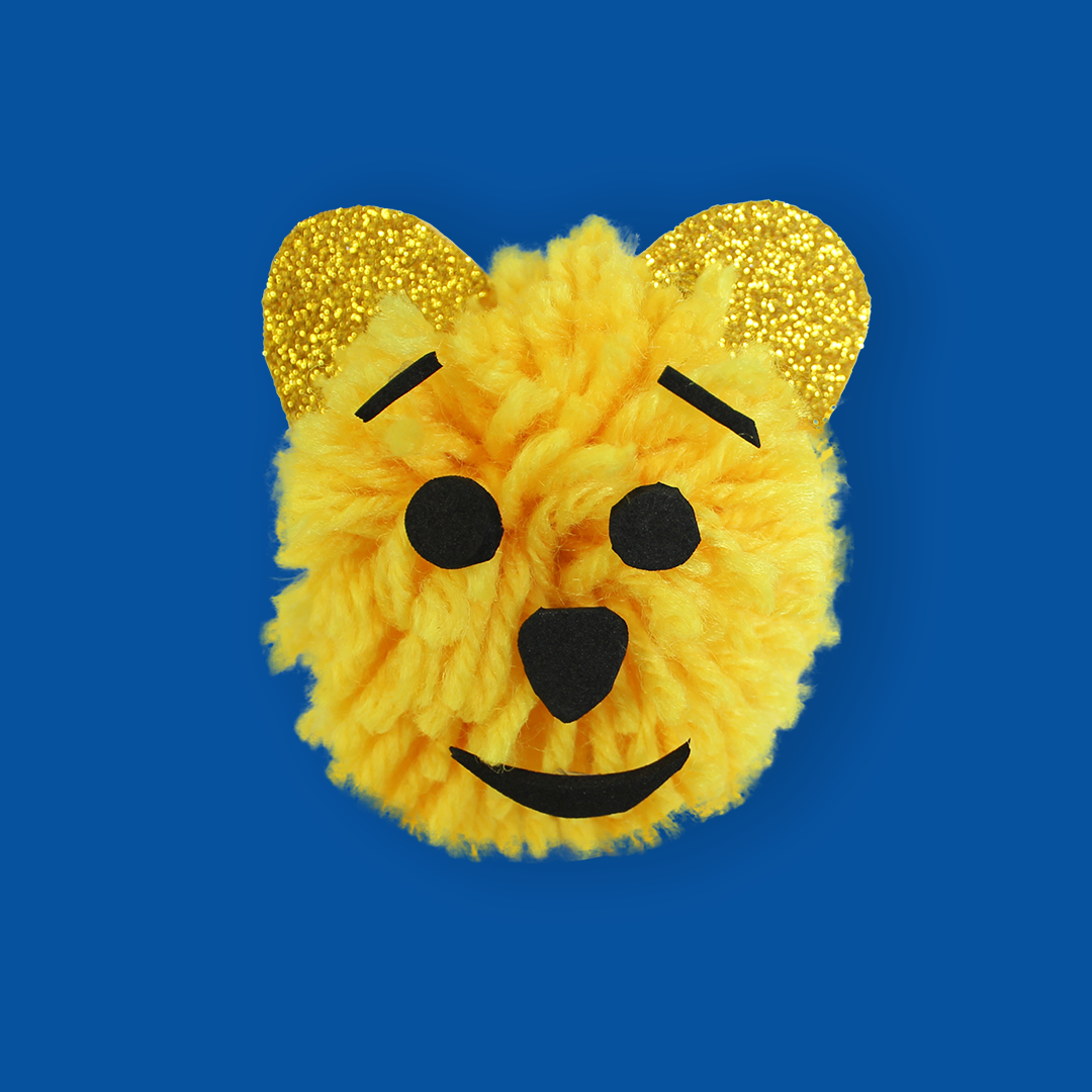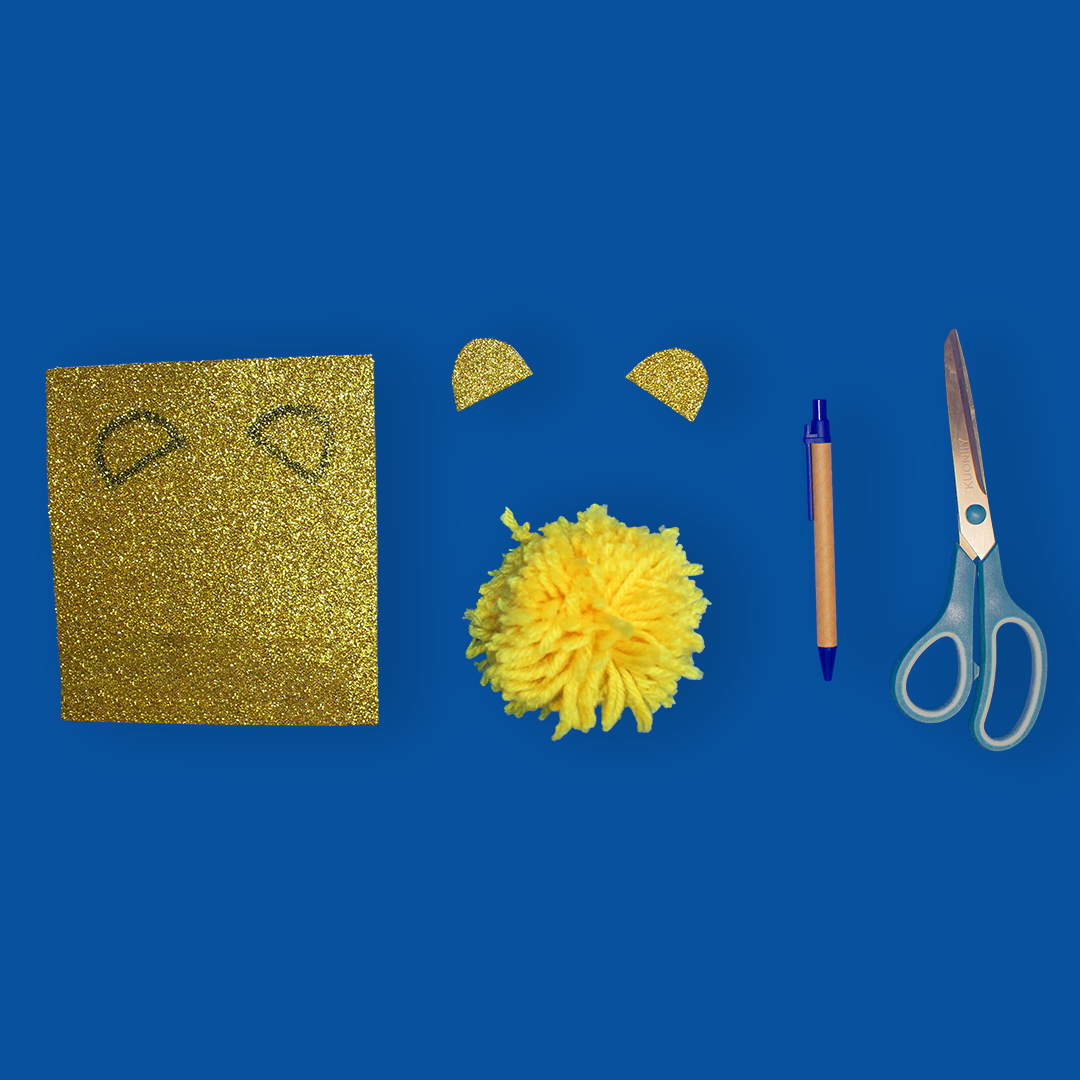 - Je dessine et je découpe les oreilles de mon ourson dans ma mousse adhésive pailletée jaune.