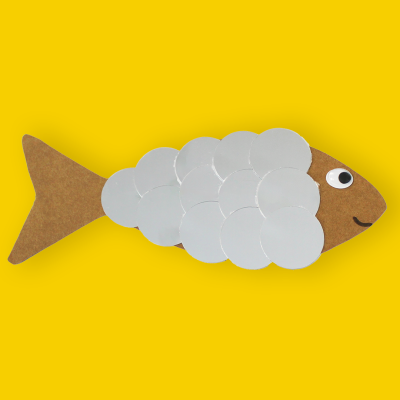 - Enfin, j'ajoute mon œil mobile adhésif ovale et je dessine la bouche pour donner vie à mon poisson d’avril !